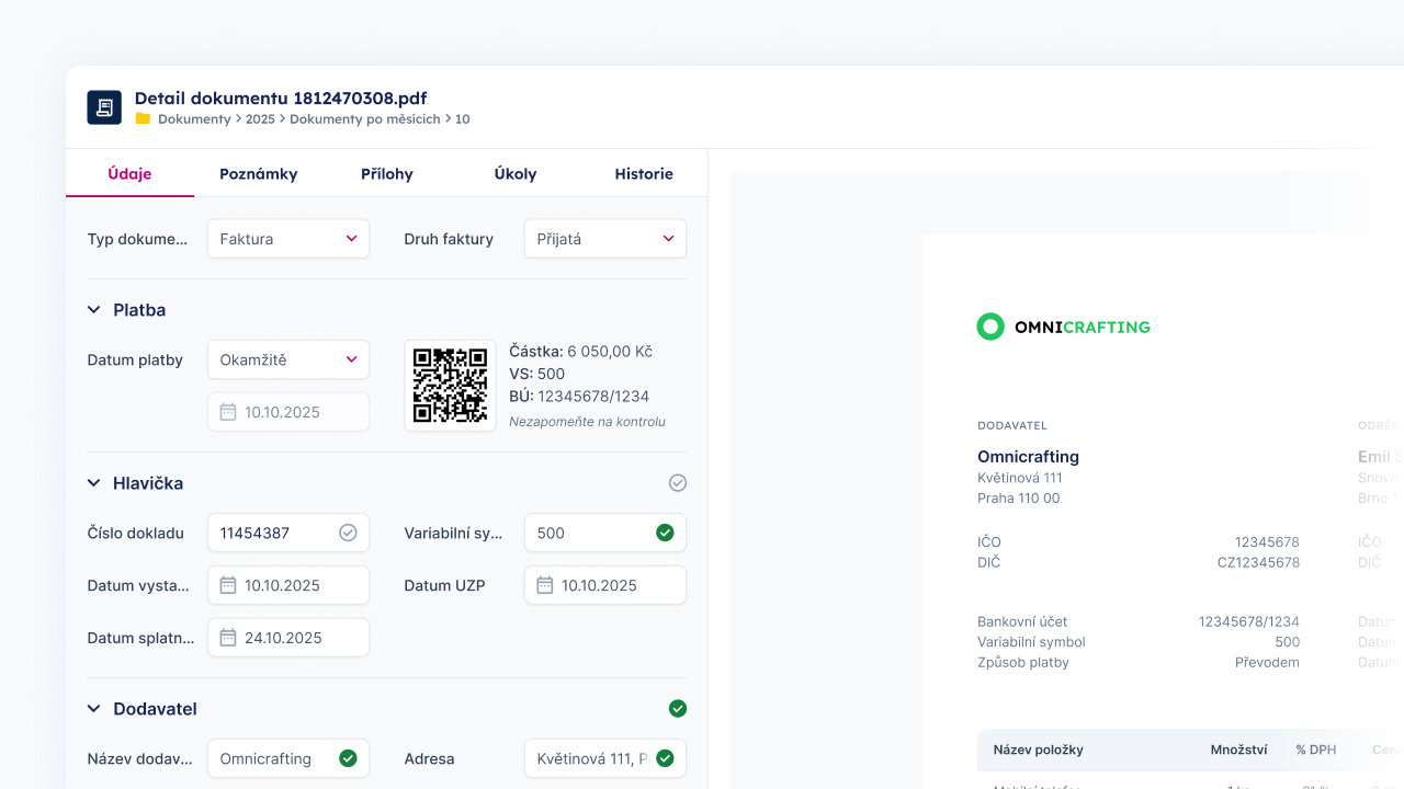 - Automatizované vytěžování faktur a napojení na účetní systémy